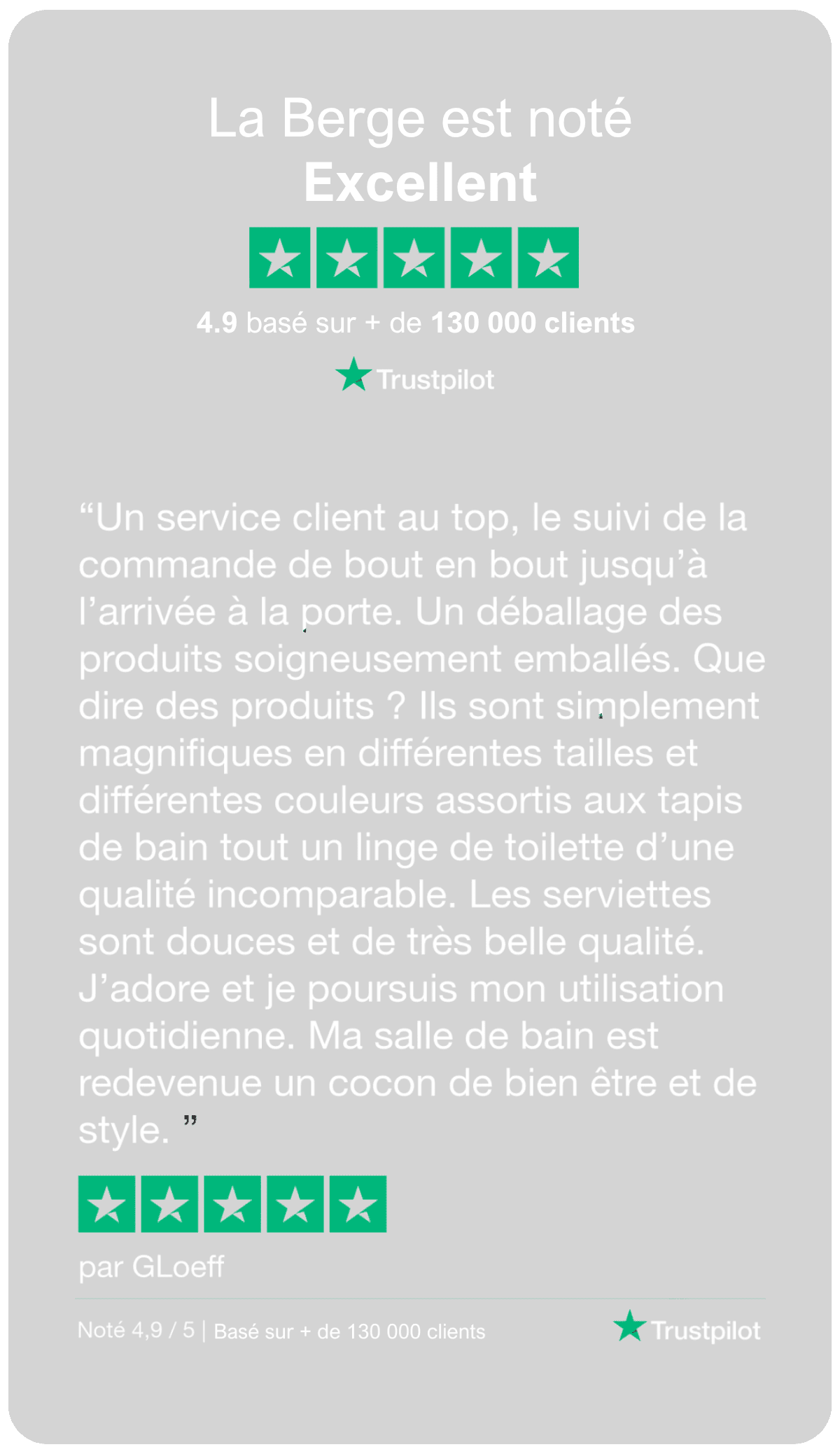 Oubliez tout ce que vous avez connu jusqu'à présent, s'envelopper chaque jour dans son moelleux et sa douceur est un véritable bonheur. Votre drap de bain La Berge est : incroyablement doux, d'une épaisseur très généreuse, ultra-moelleux, hautement absorbant, sèche très rapidement et surtout... Il le reste !