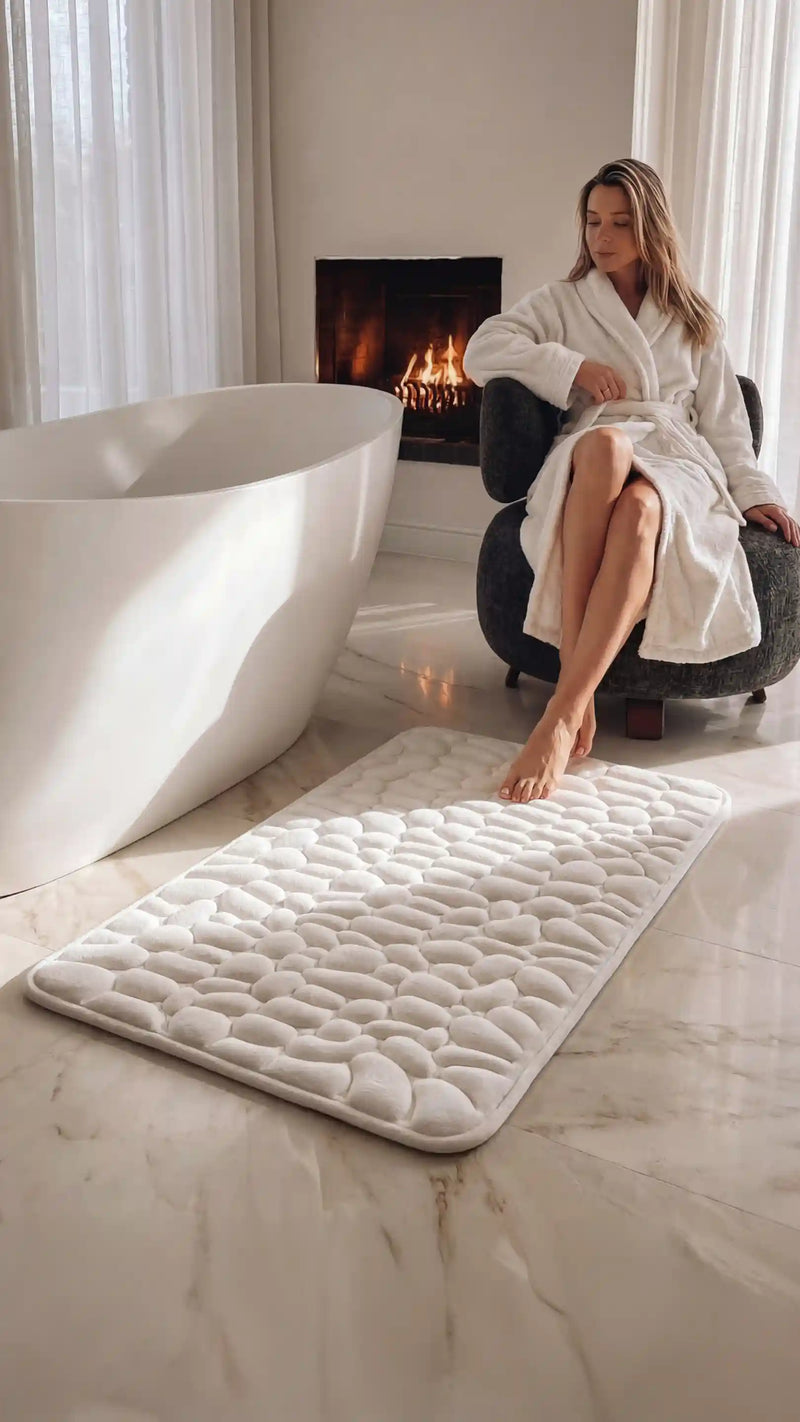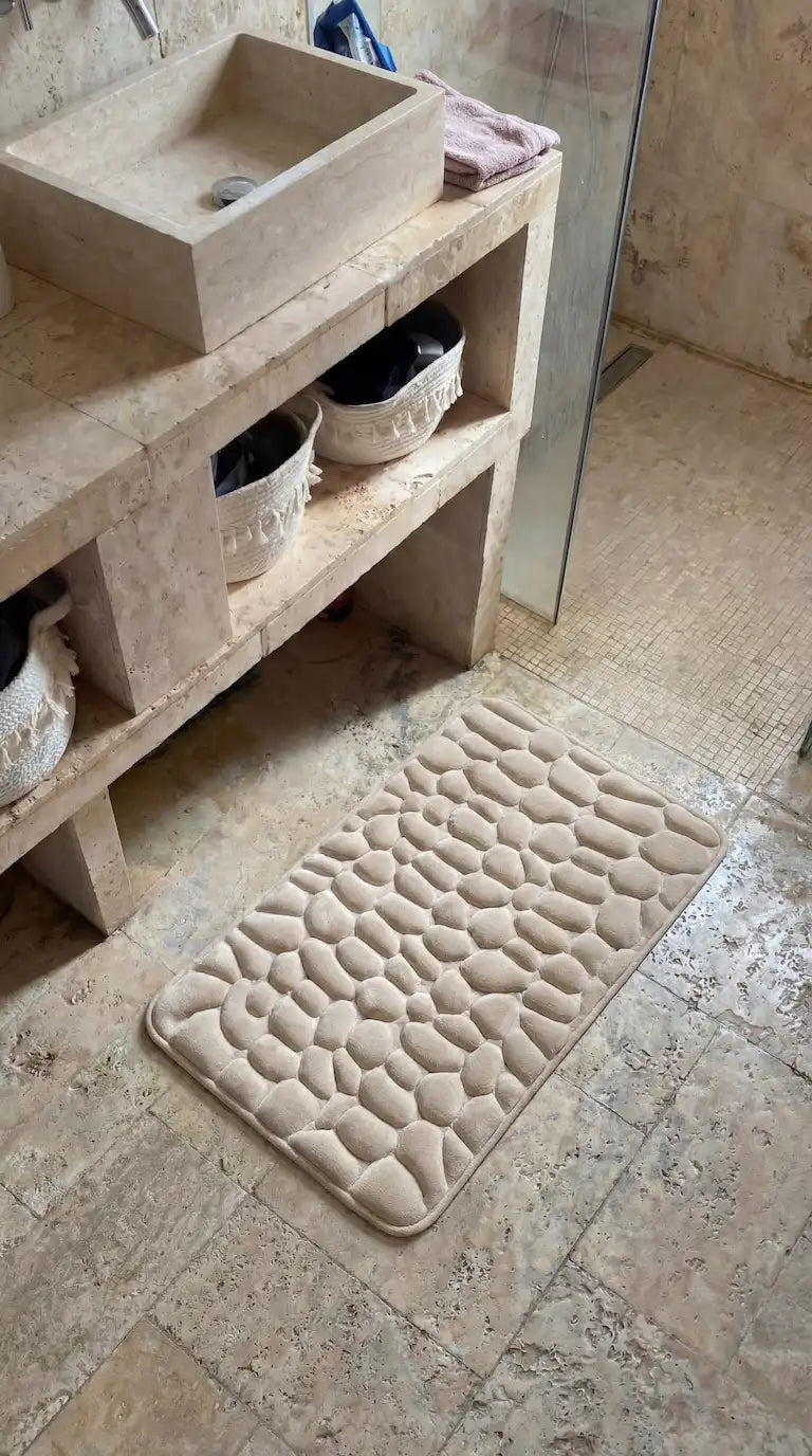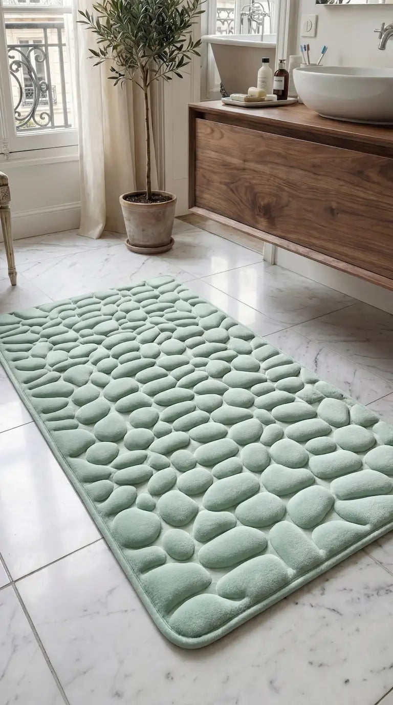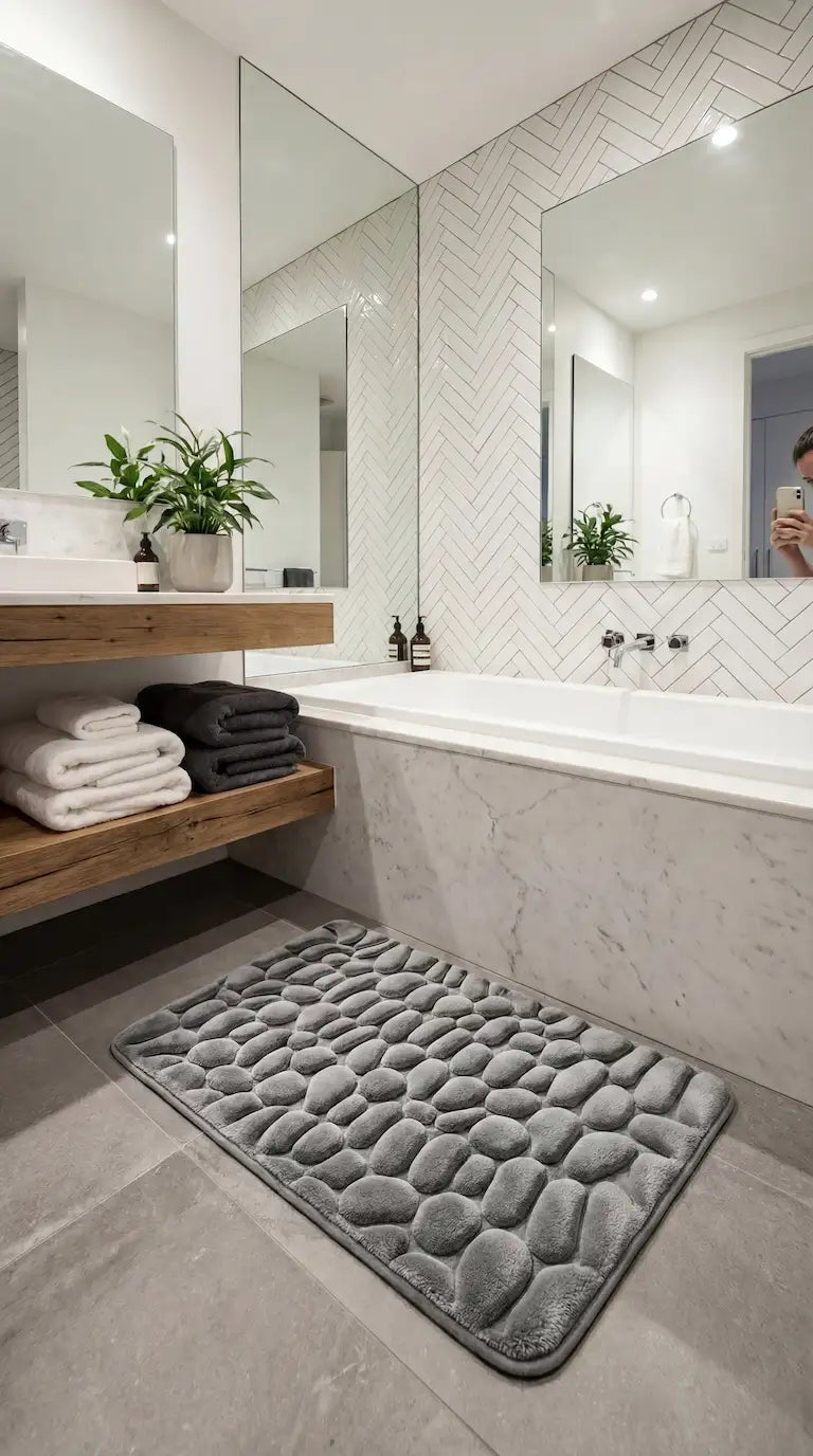 - Parfait devant une baignoire, une double vasque ou comme tapis principal au centre de la pièce, il crée un effet visuel imposant et élégant.