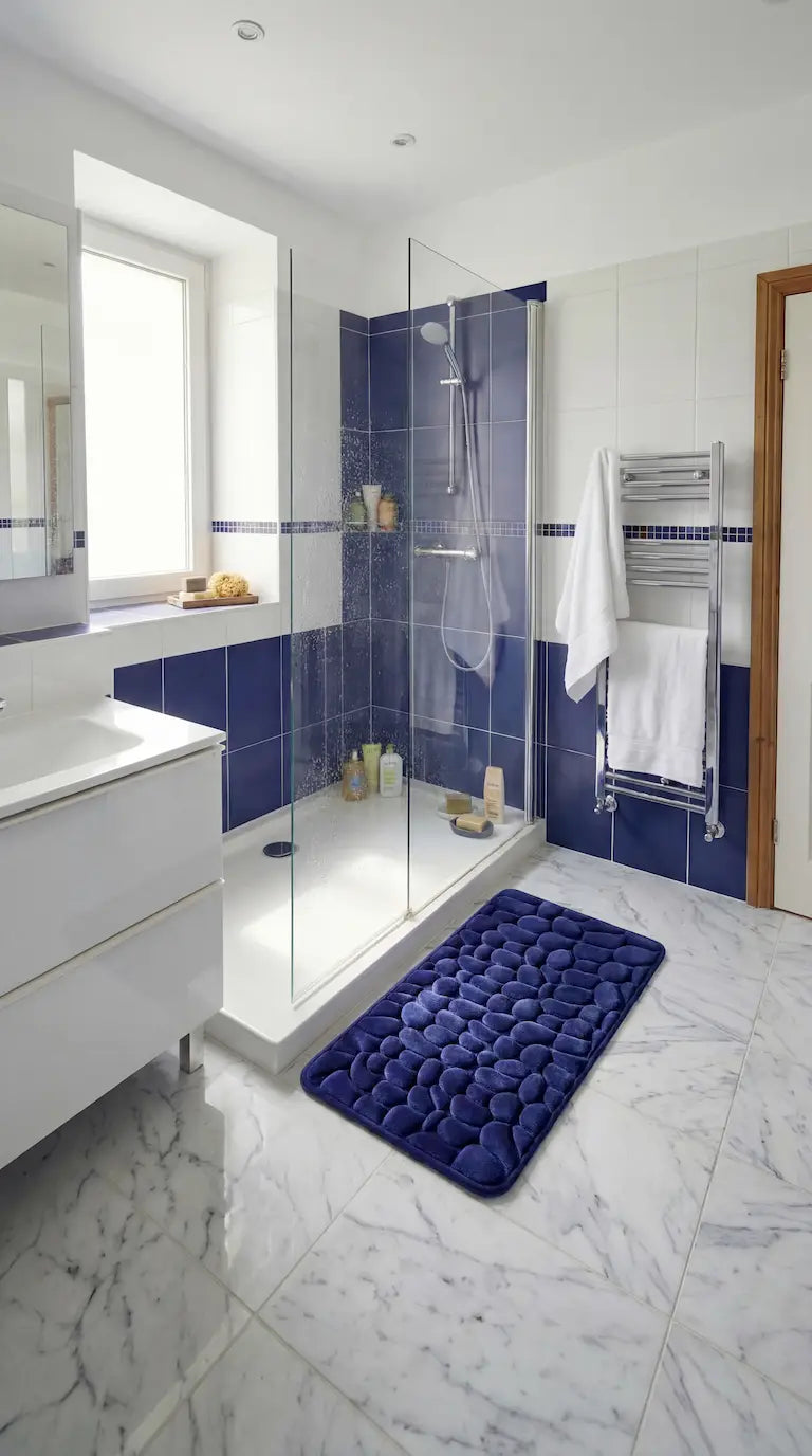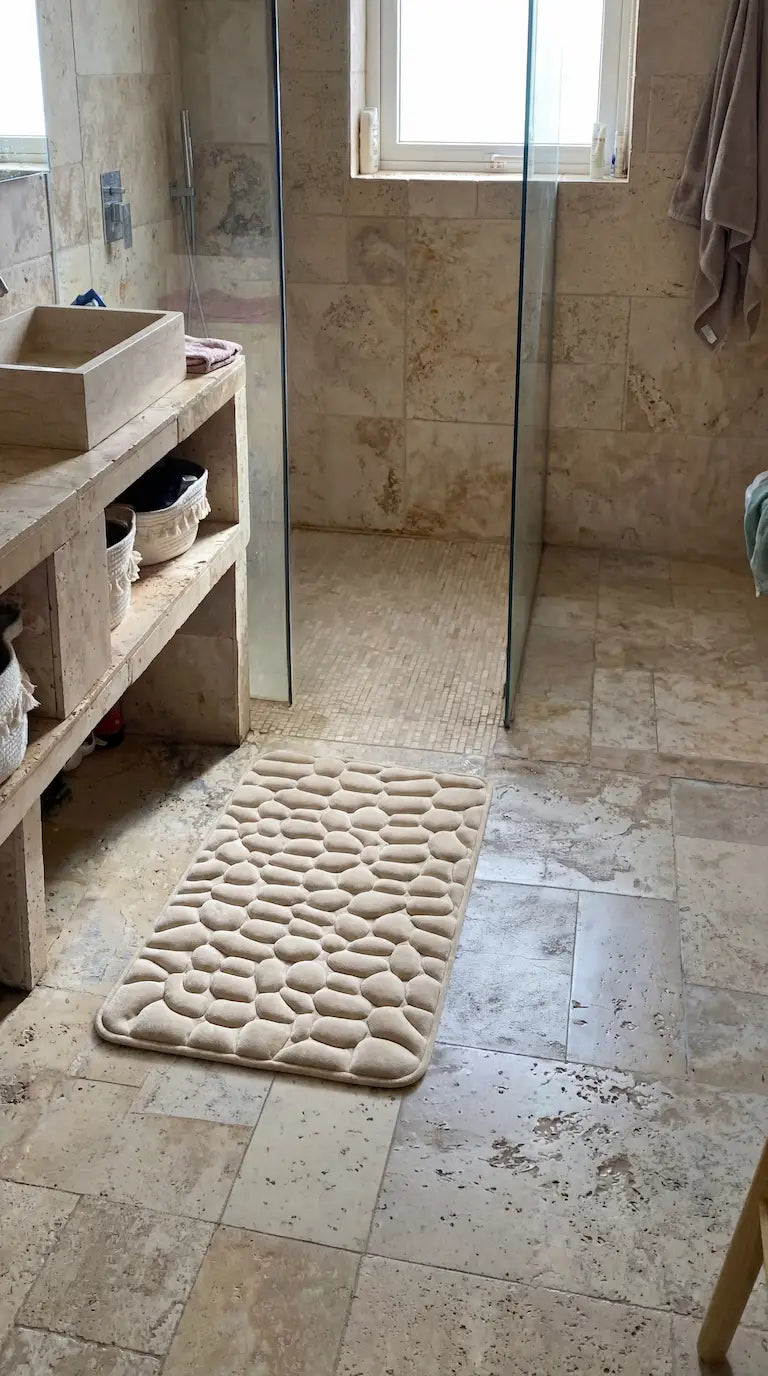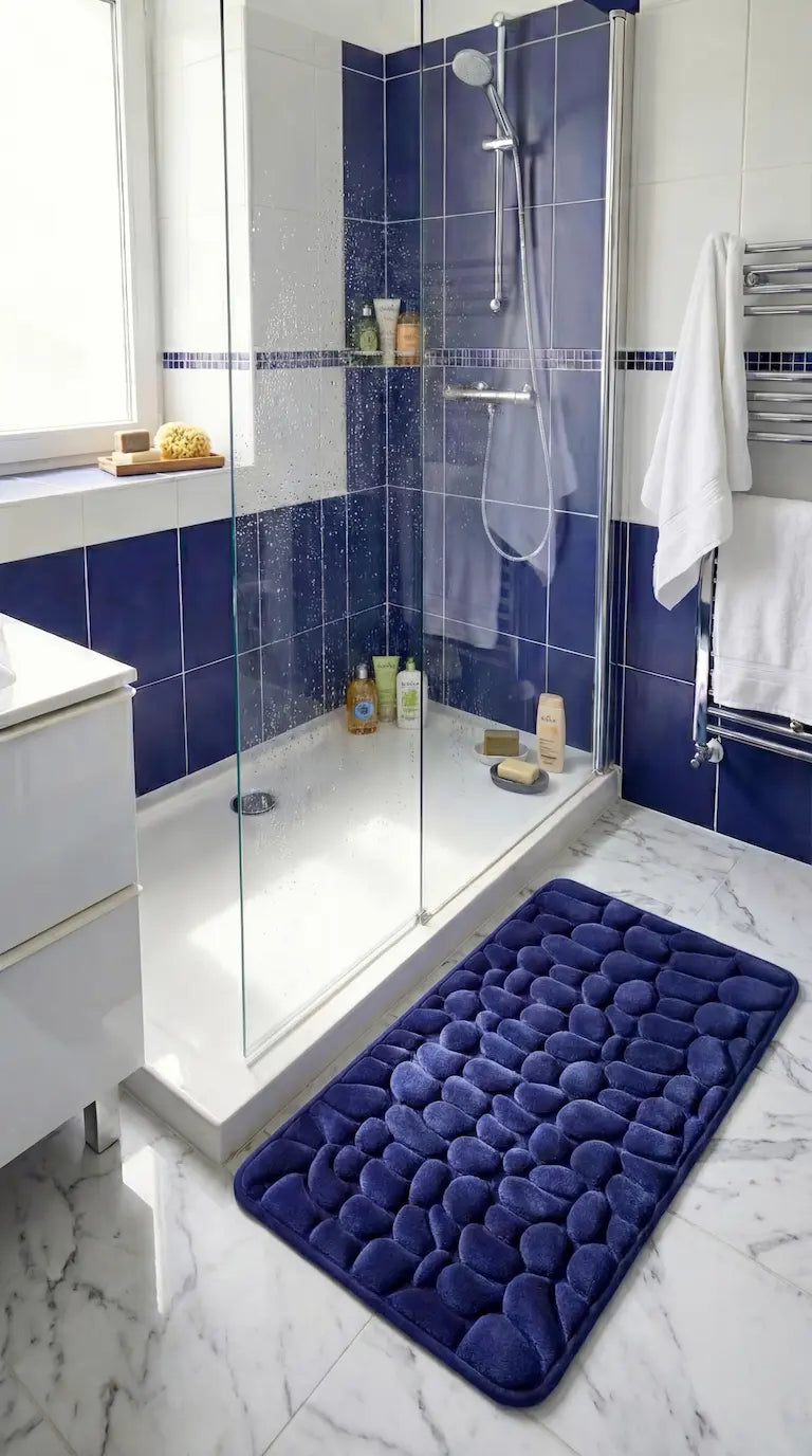 - Parfait devant une douche ou une petite baignoire pour absorber l’humidité et offrir un confort sous les pieds.